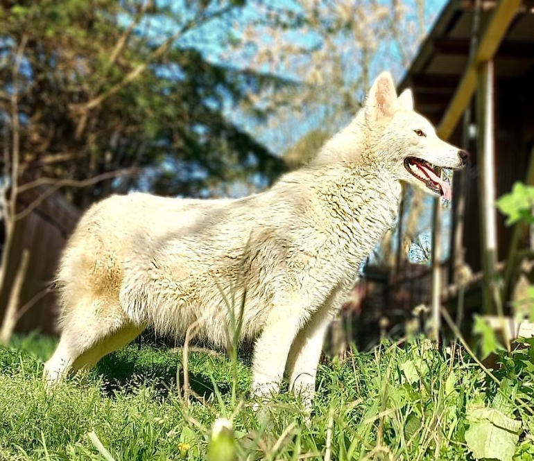 Esta combinación dará ejemplares similares al padre. Animales muy lobunos, dóciles, bellos y mágicos por donde se los mire.