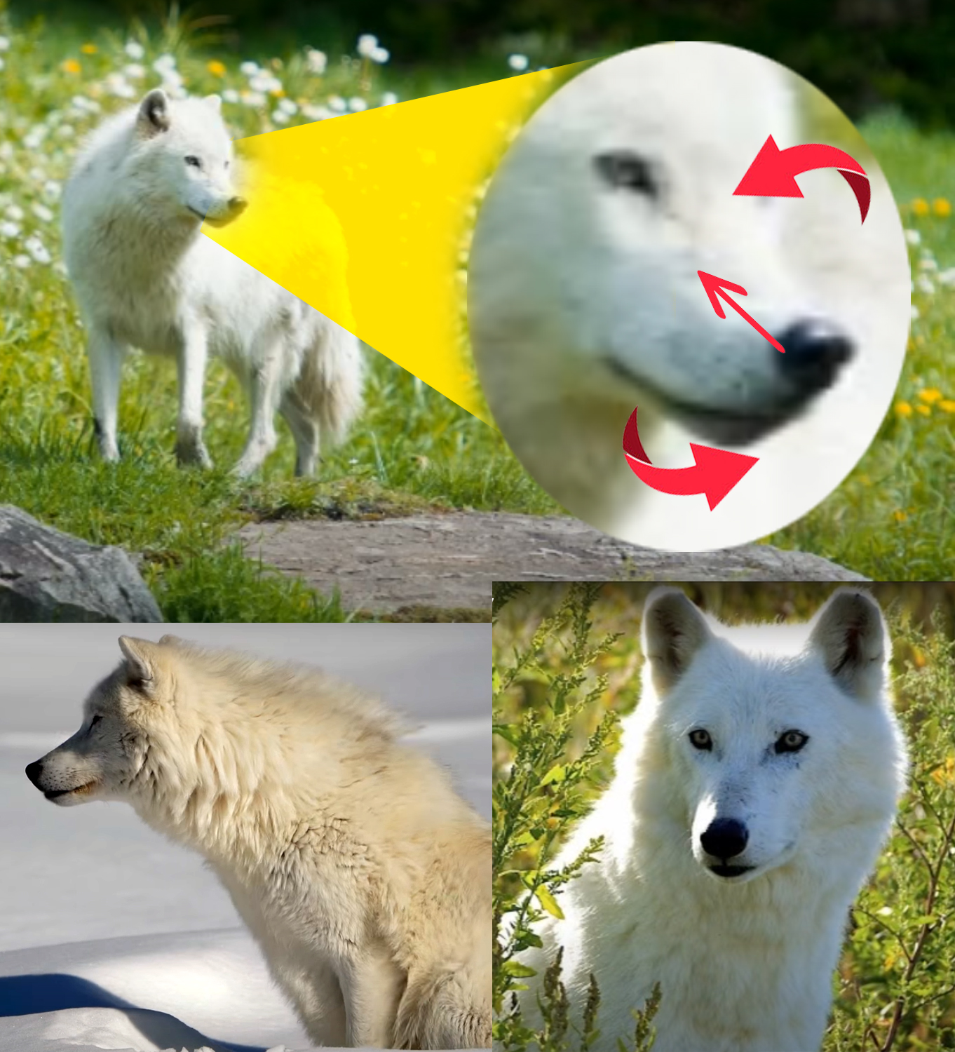 Entre los lobos árticos es bastante habitual este tipo de mordida. Obviamente nunca a nivel de un perro como bóxer u otras razas, pero sí es factible que en algún que otro ejemplar de lobo ártico silvestre veamos mordidas en pinza y algo de prognatismo.